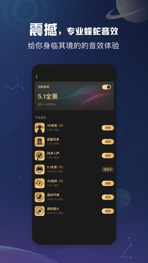 2.和小伙伴一起分享好音乐好玩法,更换精美的背景,用有趣的歌曲意境为你带来震撼有趣的音效;